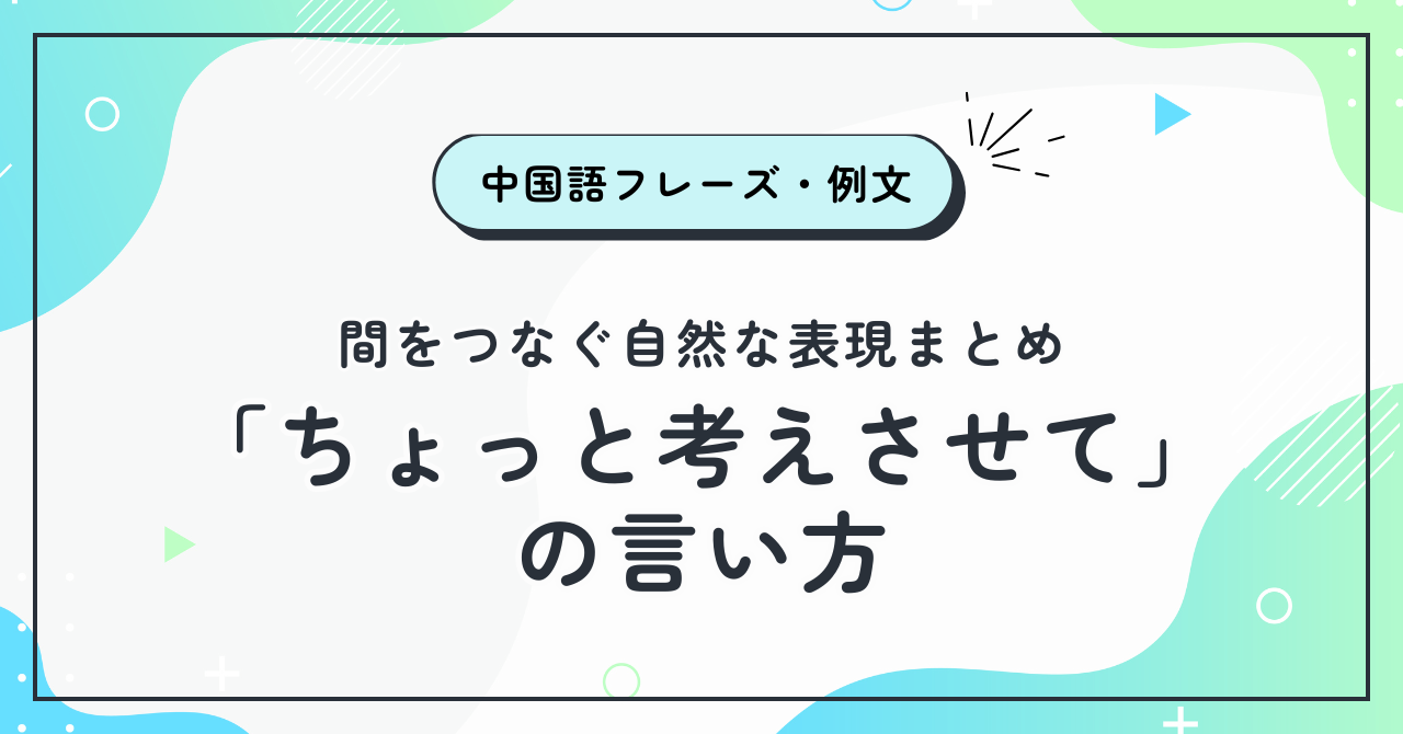 この記事では、考えている時間を自然につなぐ中国語フレーズを、場面別に紹介していきます。